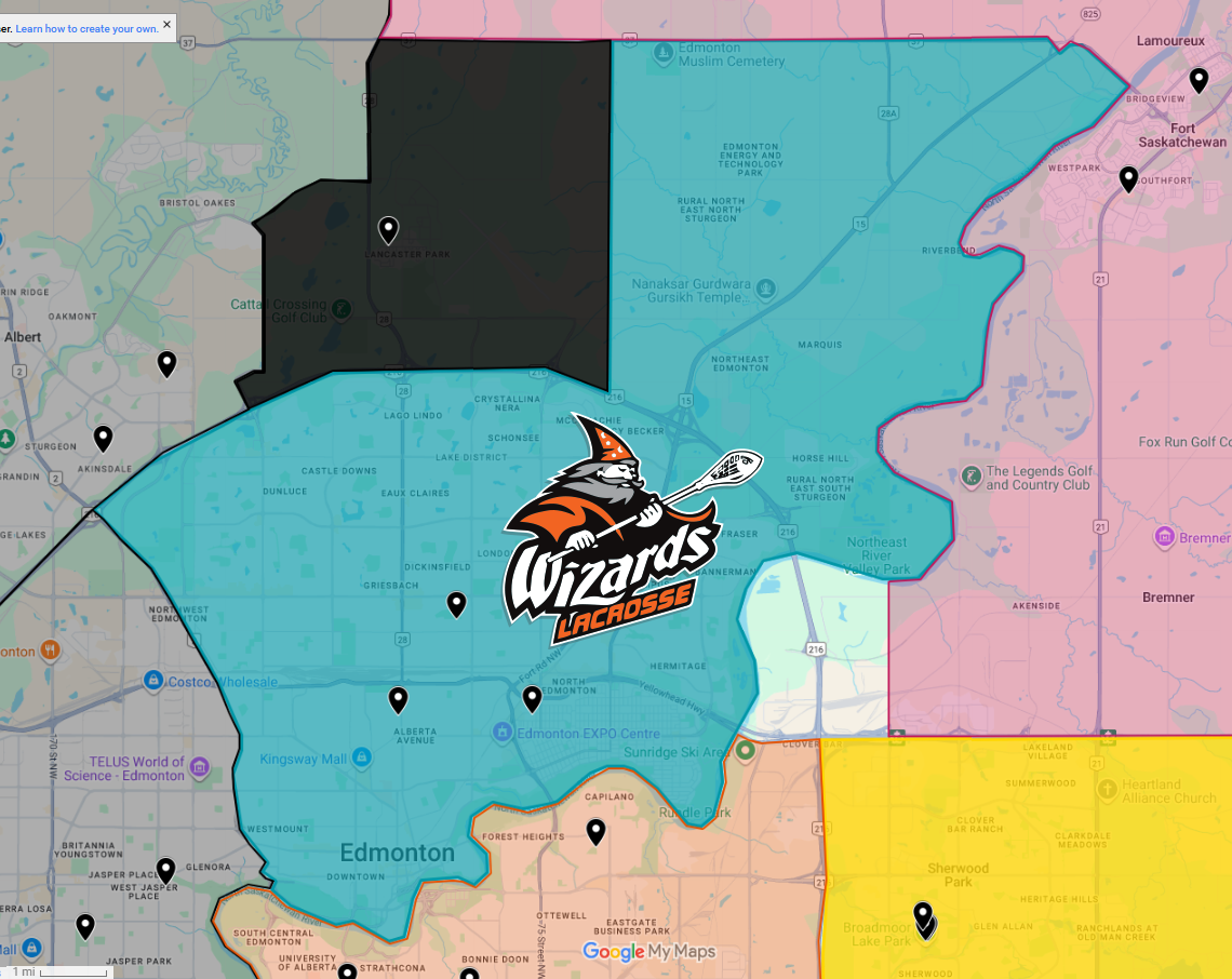 Player registration for lacrosse is based on boundary zones set by the Greater Edmonton Lacrosse Council (GELC). If you live within the Wizards boundary zone, you are eligible to register and play with the Wizards Lacrosse Club.